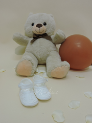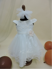 Vestito elegante cerimonia neonata con fiorellini rosa e bianchi